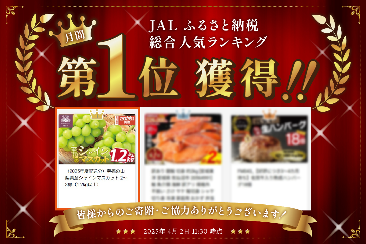 ãç·å1äœç²åŸ!!ãã2026幎床é éåãè³çŠã®å±±æ¢šçç£ã·ã£ã€ã³ãã¹ã«ãã 2ïœ3æ¿ïŒ1.2kg以äžïŒ